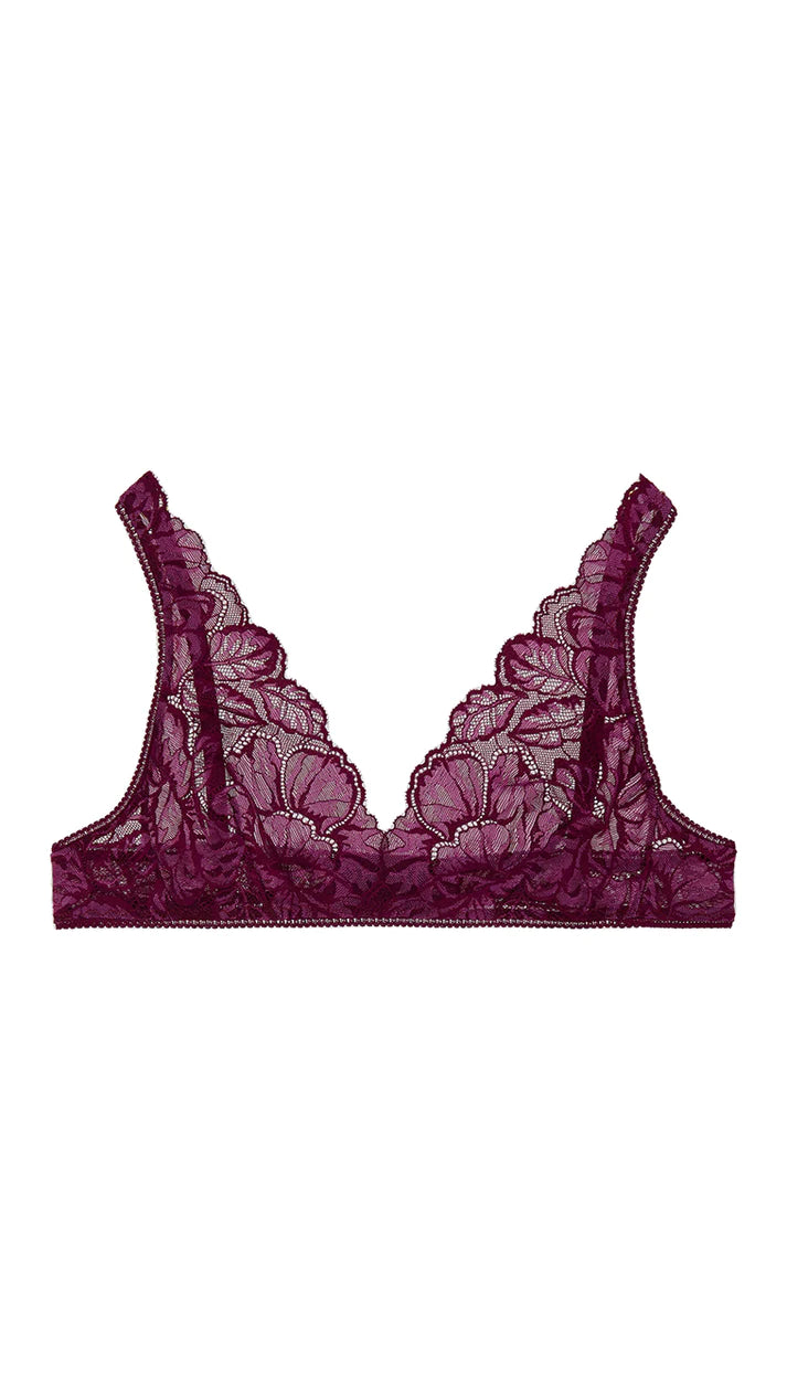 Achieve carefree elegance in the Victoria Bra Top which features larger capacity soft triangle cups crafted in the most beautiful Eggplant color lace as well as Italian satin elastic straps to provide additional support. Comfort meets ravishing allure in this piece which, is sure to draw the eye while lace edging flatters the décolle.