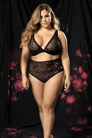Spider's Web Tulle and Lace V-Neck Bodysuit