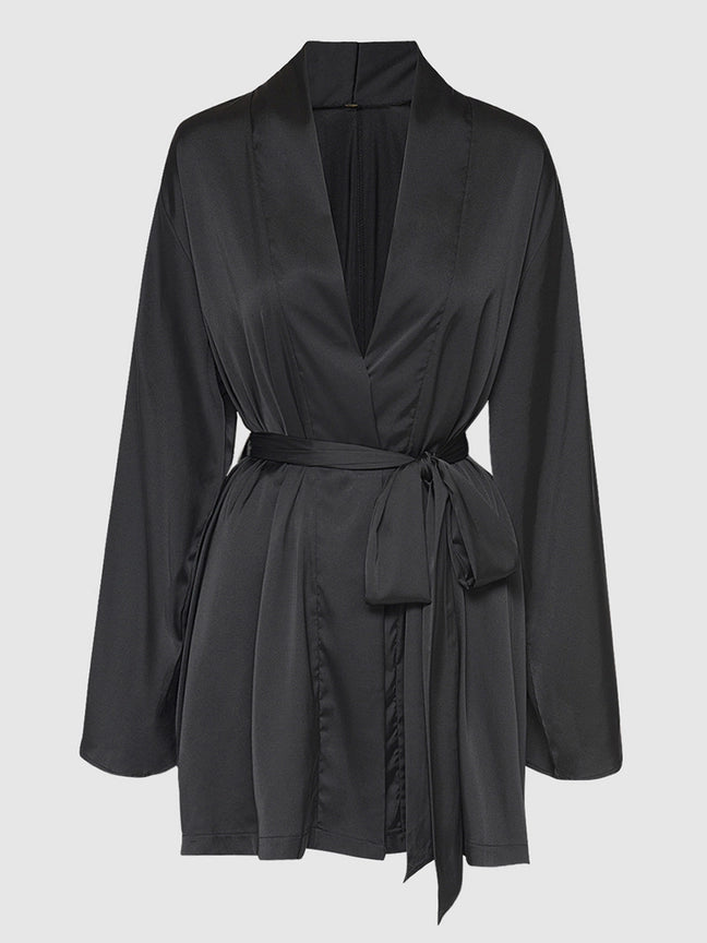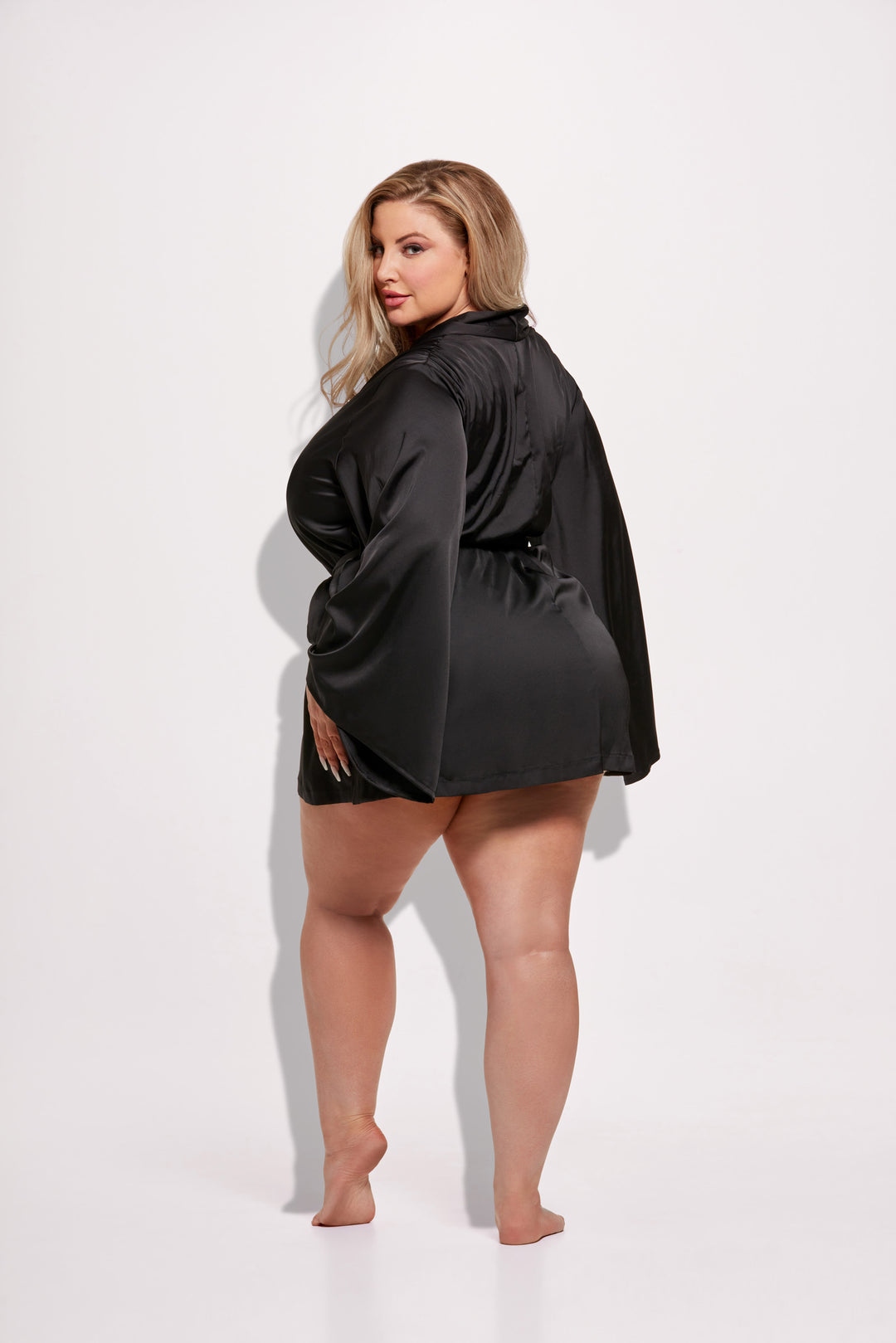The flirty short hemline adds a playful touch to the overall design, highlighting your legs and creating an alluring silhouette. Whether you're preparing for a romantic evening or simply indulging in self-love, the Brigeta Robe is the perfect choice for those who appreciate the finer things in life.