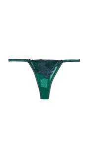 One The best sellers adjustable satin straps Thong has been designed for the Clio collection in a contemporary forest green lace and mesh. This comfortable piece made with Italian satin straps that wrap elegantly around the body.