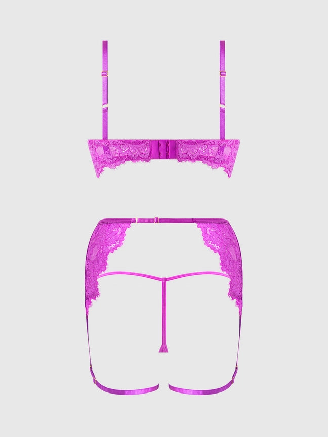 Reanna Lace & Chain Bra, Garter & G-String Set