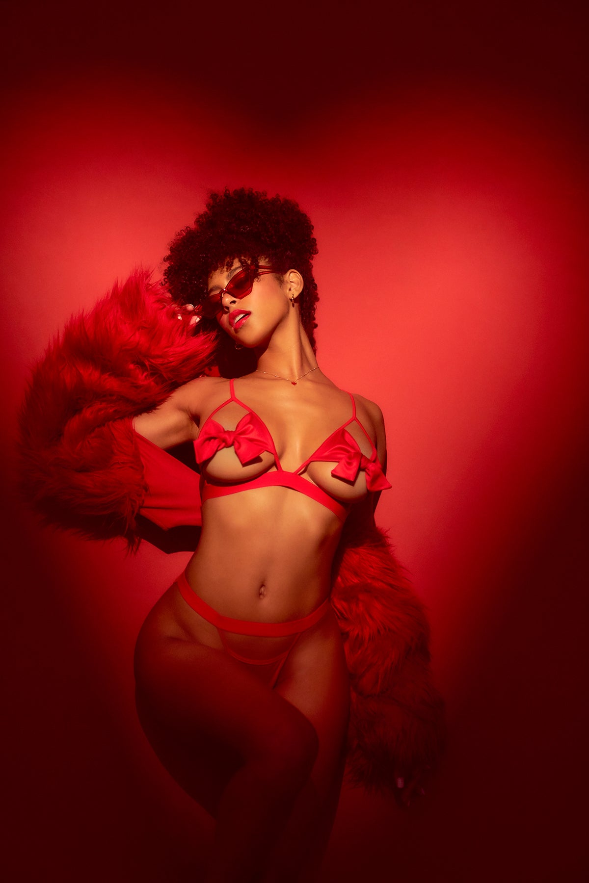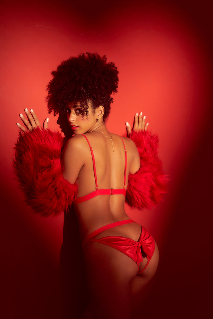 Be the sexiest gift of the season in this playful two-piece set. Featuring a wireless bra top with open cups and flirty bow details, it offers adjustable straps for a comfortable fit. Paired with a matching bow-accented panty, this set is the perfect combination of charm and seduction for unforgettable moments.