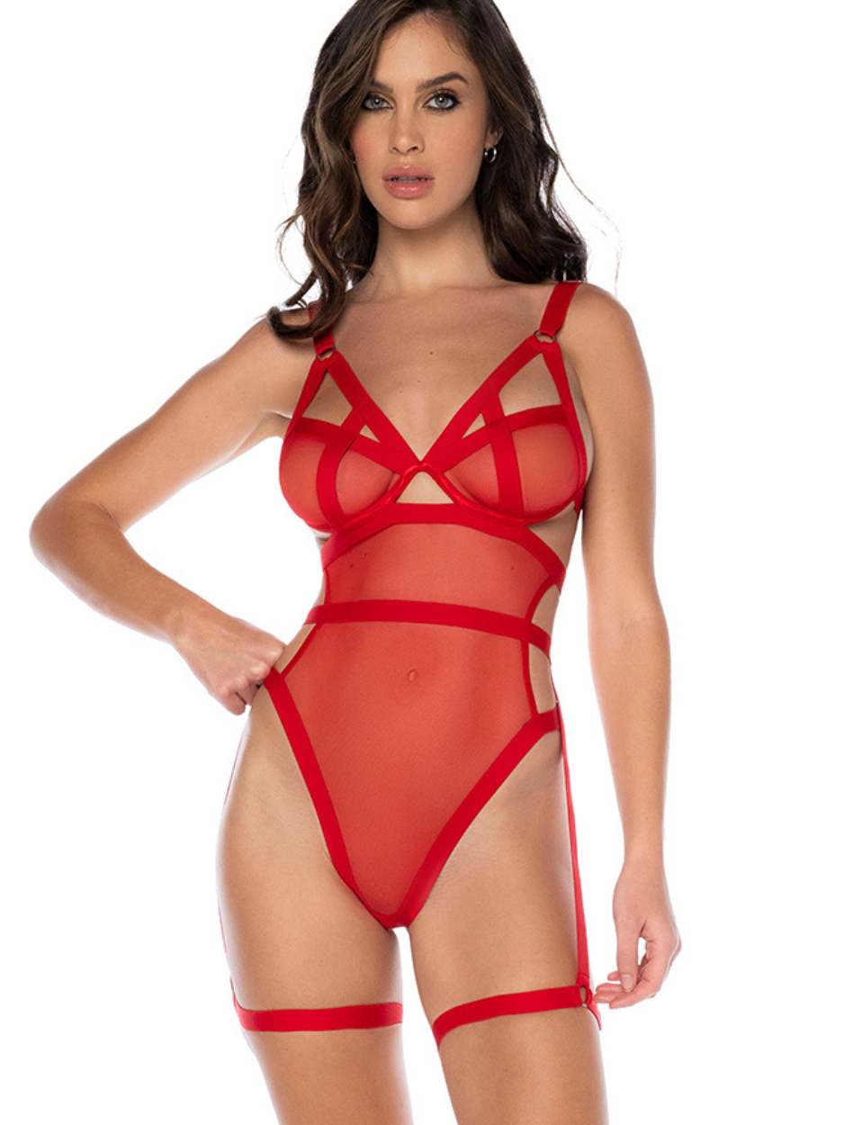 This modern mesh bodysuit with elastic band details is designed to accentuate your figure like no other. Featuring an underwire for enhanced support, adjustable straps for a tailored fit, and a crotch fastening for convenience, this piece blends comfort with style. The bold elastic band accents create a flattering silhouette, making it the perfect choice for a sleek, confident look.